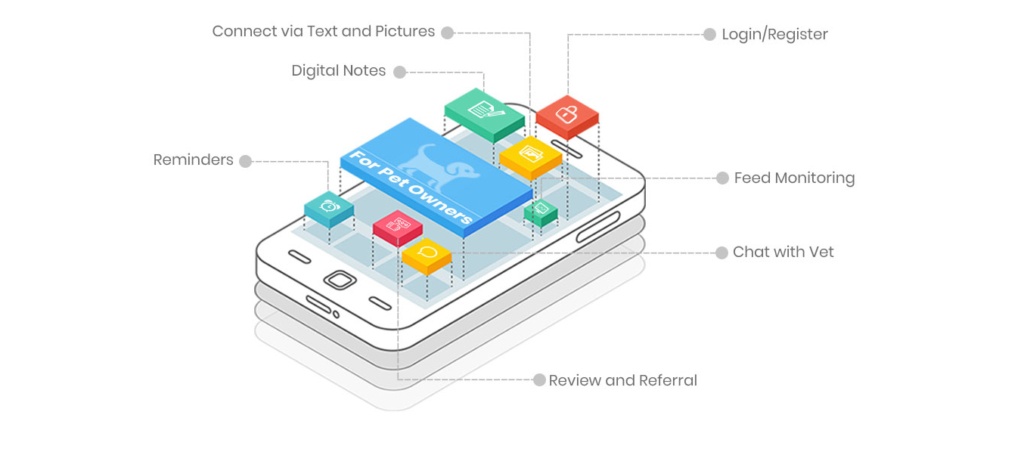The app lets you book appointments, has medication and appointment reminders or notifications, and keeps track of your pet’s history records.