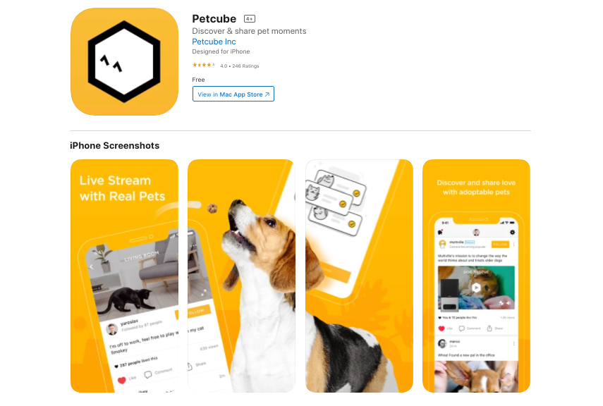 Petcube is a live video streaming app for pets.
