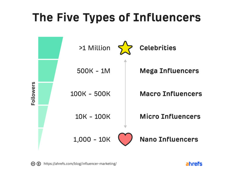 Last, you have your nano influencers. This is a newer category of business influencers that have a small following of roughly 1,000 to 10,000 people.