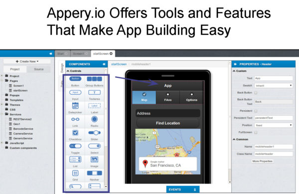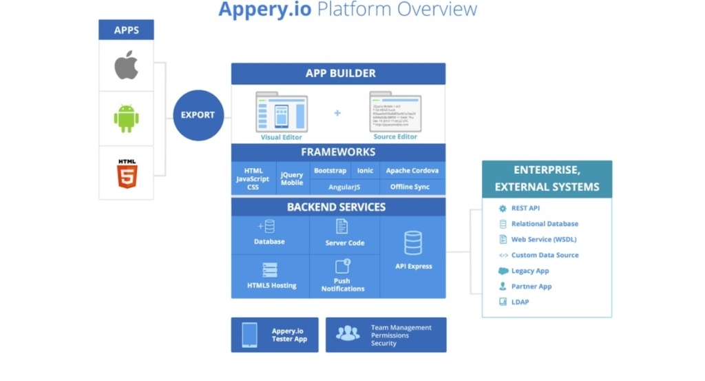 Appery.io comes with an easy-to-use app builder which generates code in a variety of frameworks and coding languages, like JavaScript, jQuery Mobile, Ionic, PhoneGap, and Bootstrap.