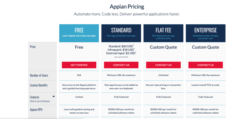 Unlike some of the no-code solutions on this list, Appian is considered to be a “low-code” development platform, meaning it does require some technical knowledge.