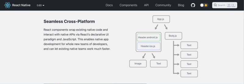 React Native is another major player in the cross-platform world. It was created in 2015 by Facebook and is a framework based on the JavaScript programming language.