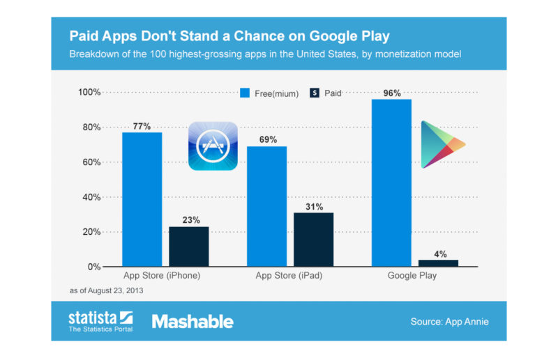 - Users have higher expectations when paying for an app, so quality needs to be high. High expectations can also lead to more negative reviews.