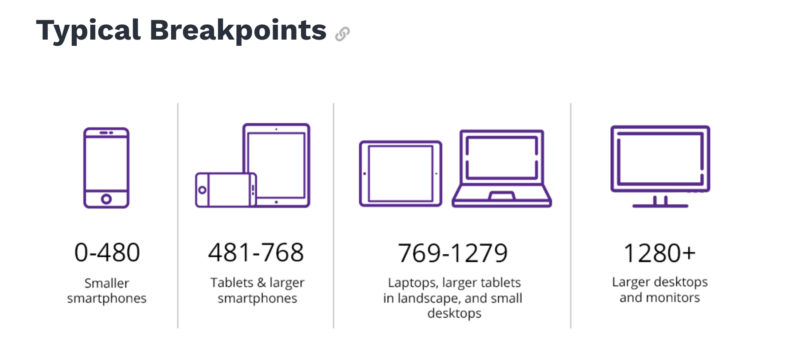 Here are some of the most common responsive breakpoints you can set for popular screen sizes: