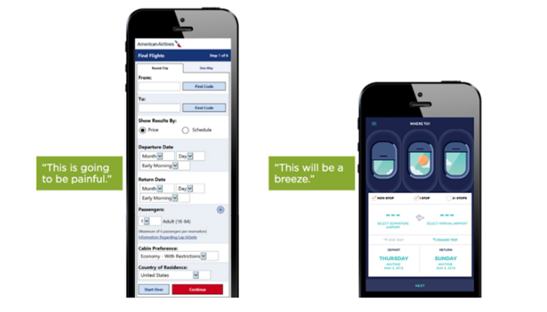 Take a look at the mobile form on the left from American Airlines. Does this look like something you’d want to fill out? Probably not. A lengthy form is a big UX faux paus and leads to a high drop off rate. Forms on mobile should always be as short as possible, like the one on the right.