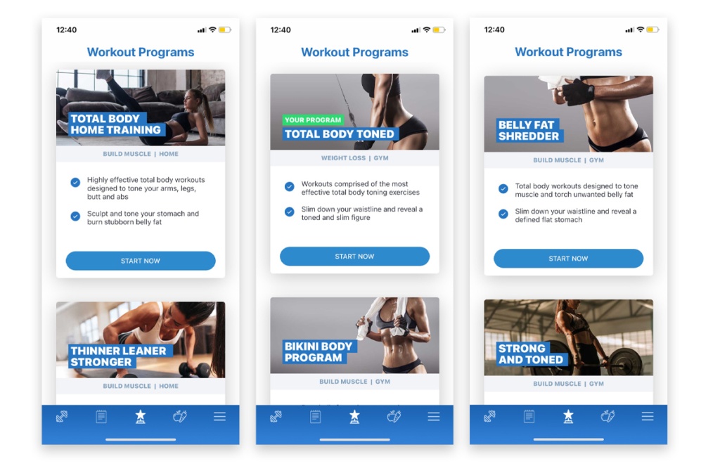 If you have the paid version, logging in will take you to a home page with recommended workout programs based on the information you put in when you first registered.