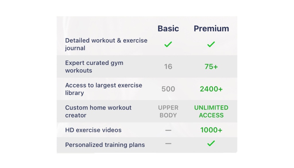 With their Premium Plan, you can create tailor-made workouts based on your experience level, fitness goals, and equipment available to you.