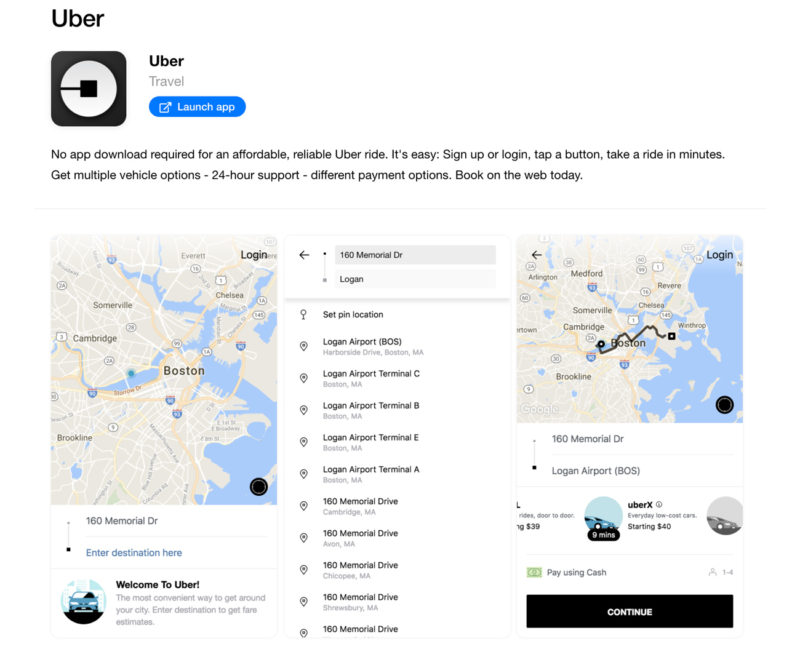 Uber is another company offering a PWA to help them expand to new markets.