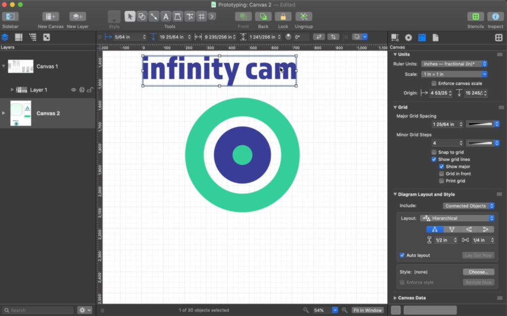 Like Sketch, OmniGraffle also uses an infinite canvas in your document which can have multiple layers.