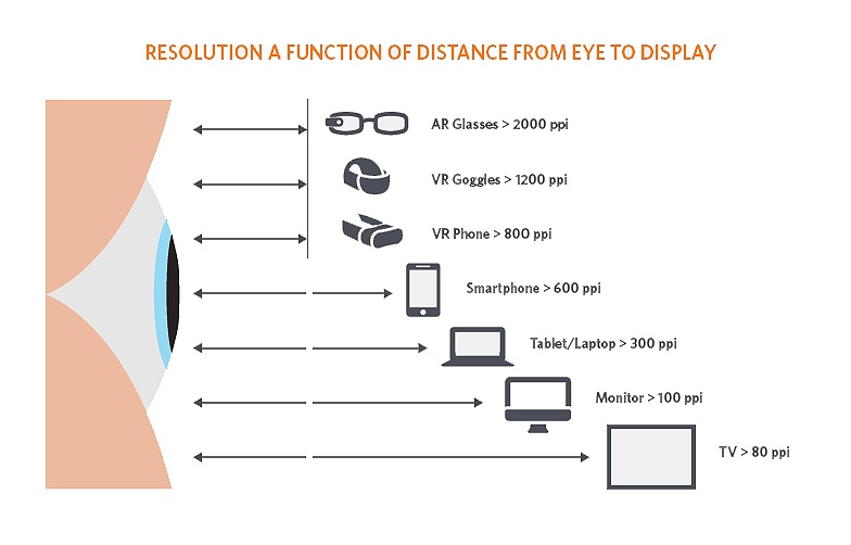 Viewing distance, color accuracy, contrast, and brightness also play important role in overall visual quality of the device.