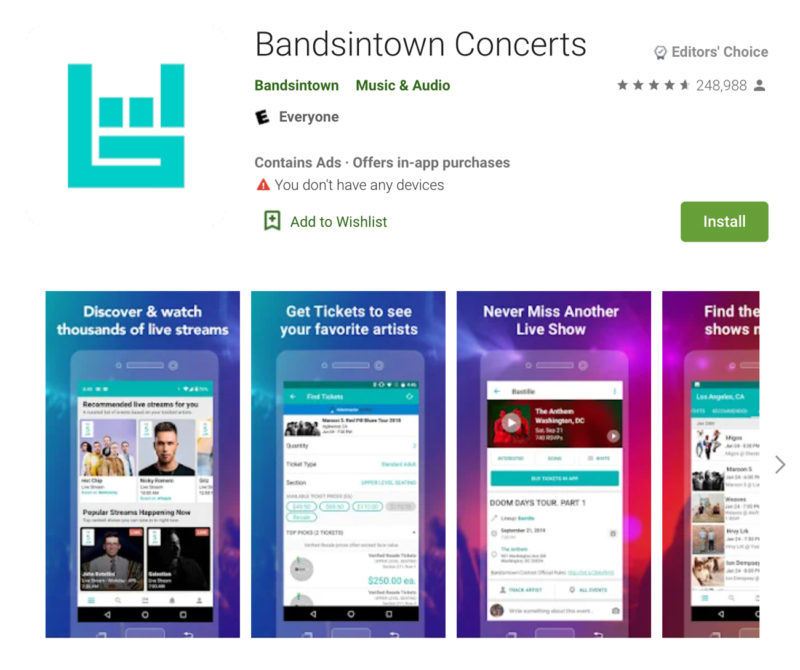 Unlike other event apps, Bandsintown focuses on concerts. It’s the highest rated and #1 concert discovery app for Android.