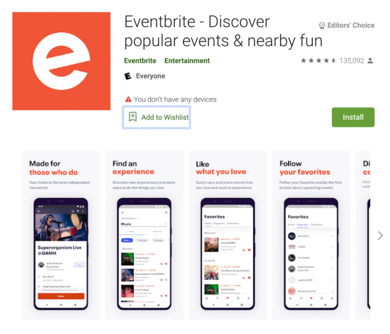 Eventbrite is another incredibly popular app and website where users can find local events of all kinds, from concerts and music festivals to bar crawls, craft shows, kids events, and more.