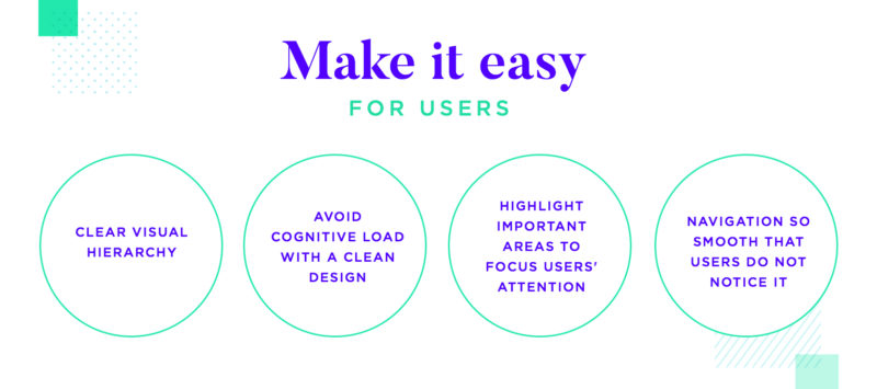 Everything needs to be done with the user in mind, which means it should all be easy to read, use and understand.
