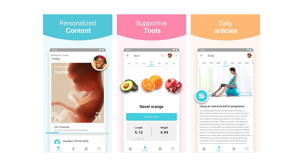 Some even include features like a baby name generator, a contractions timer, and a prenatal workout planner.