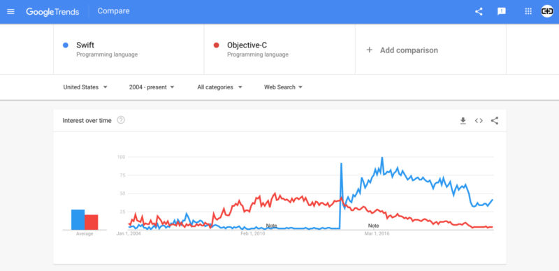 Swift uses readable, efficient language that is easy to write code for. It also features an interactive coding interface that