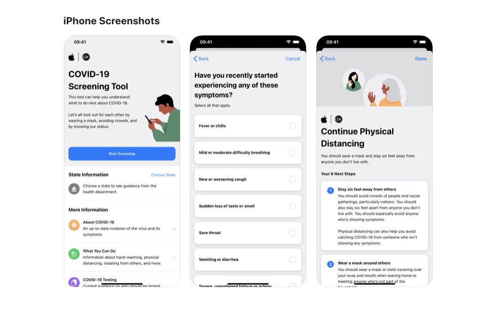 Apple partnered up with the CDC, FEMA, and even the White House to offer individuals tools that can help users during the crisis, like a screening tool that guides them on what to do if they have Covid symptoms and if they’ve been in contact with those with Covid.