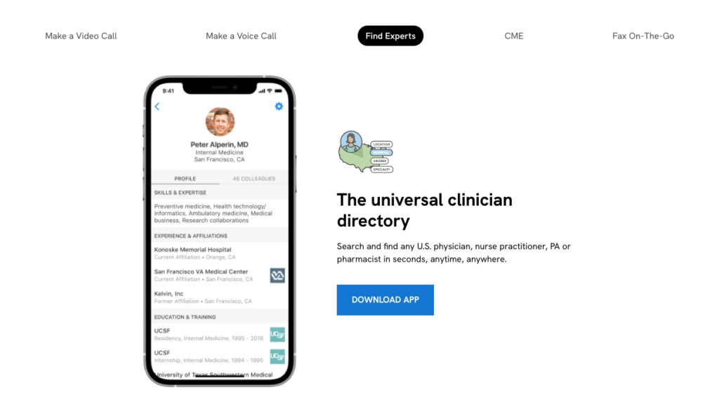 It’s a mobile app that lets you connect with your colleagues and access all sorts of clinical resources, like medical literature and guidelines.