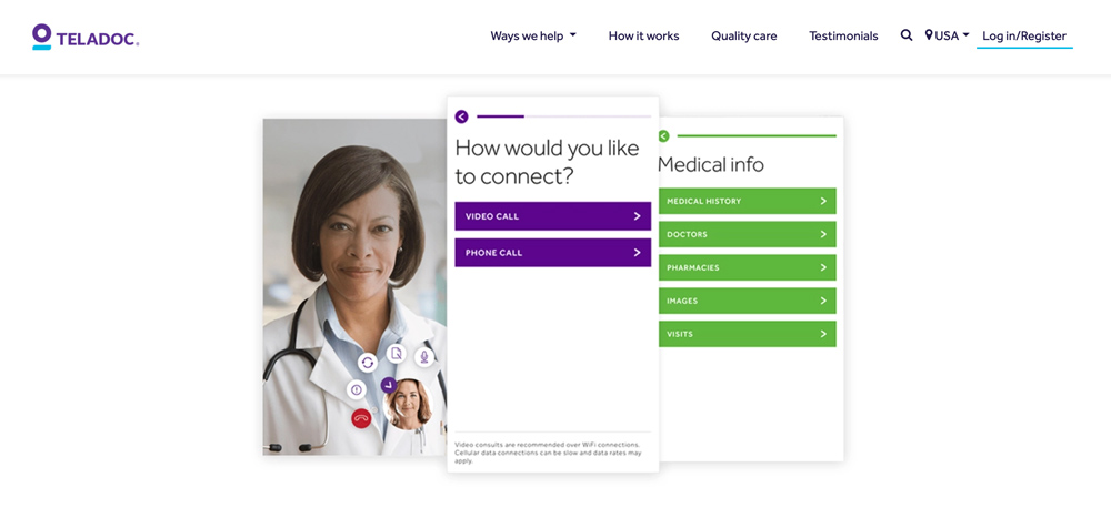 Teladoc is a healthcare company that provides telemedicine services through a mobile app.